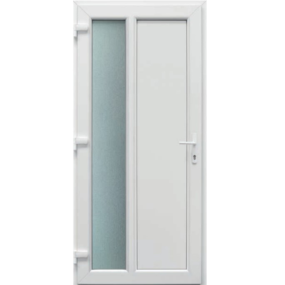 Ajtópanel: 24 mm vastag 1,5 mm-es kétoldali PVC lemez borítással, extrudált poliuretán hab szigeteléssel. Üveges panelek esetében az az üvegszerkezet 4-12-4 mm, mindkét oldalon satinato üveg.
