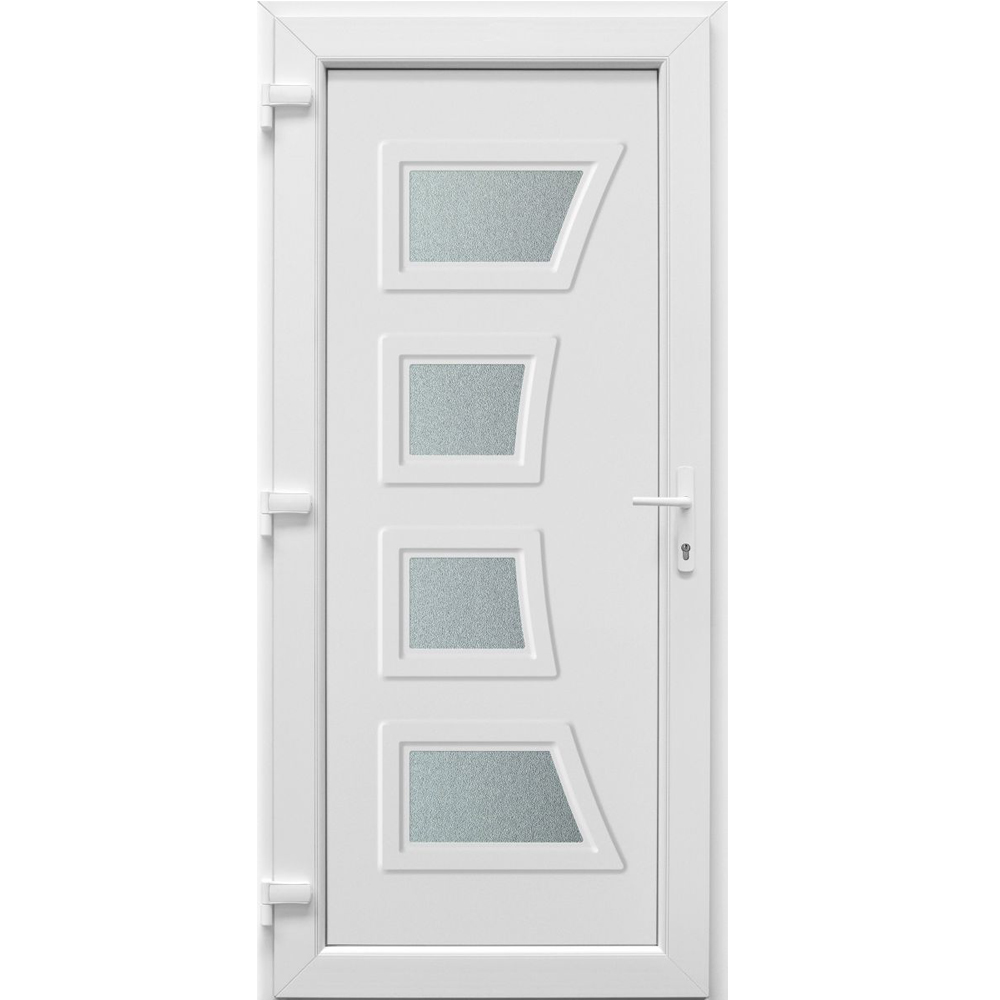 Ajtópanel: 24 mm vastag 1,5 mm-es kétoldali PVC lemez borítással, extrudált poliuretán hab szigeteléssel. Üveges panelek esetében az az üvegszerkezet 4-12-4 mm, mindkét oldalon csincsilla üveg.